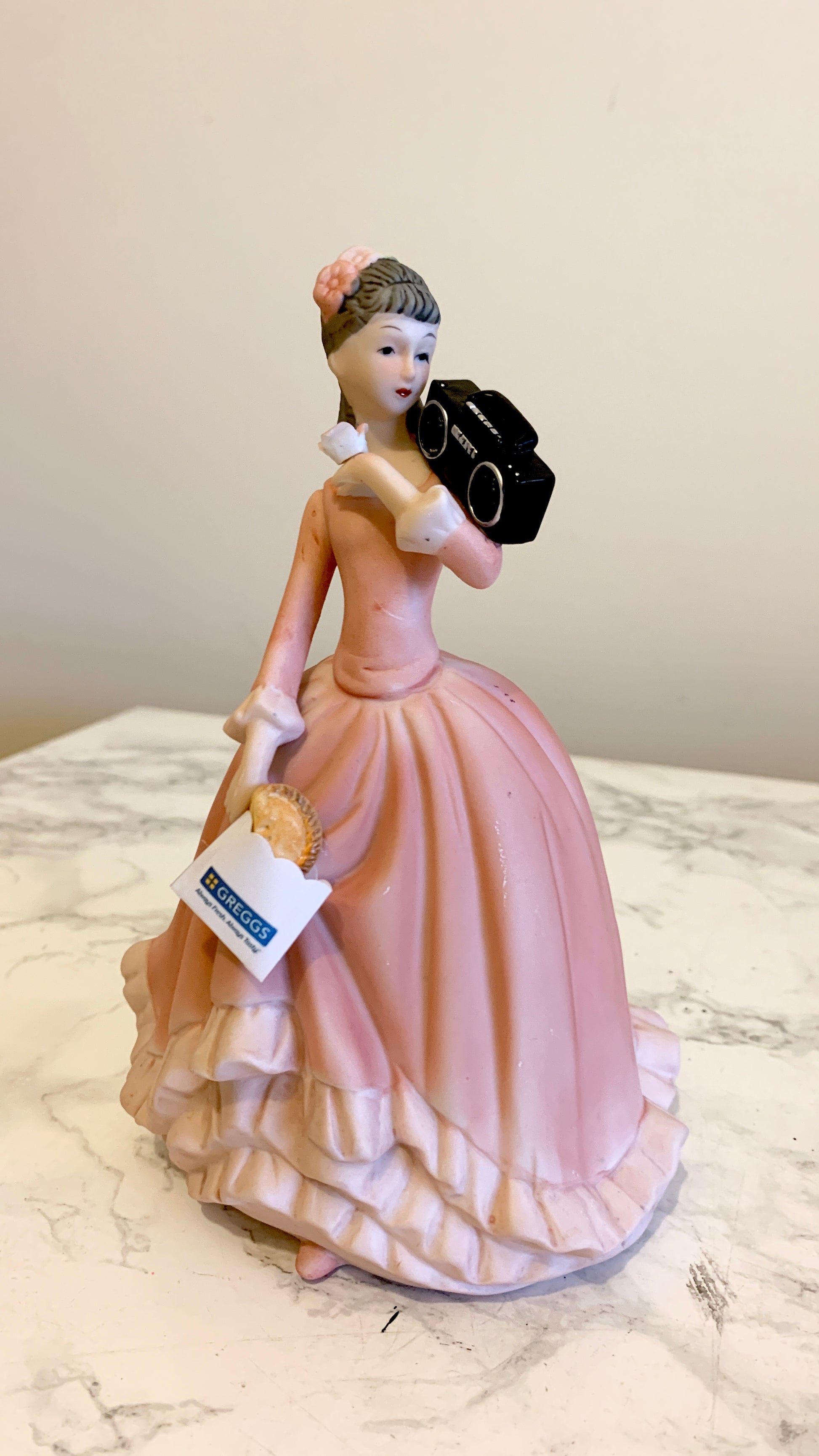 These upcycled vintage figurines blend classic porcelain charm with a modern, playful twist. Each piece starts as an authentic vintage ornament, carefully sourced and then reworked by hand with unexpected details that turn it into a true statement piece.