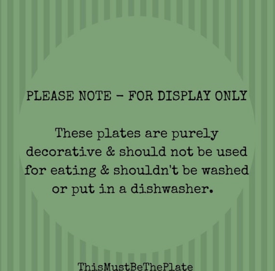 Plate measures 8” and all lettering is graffiti style, hand stamped, so plate is for decorative use only & should not be washed or used for food.