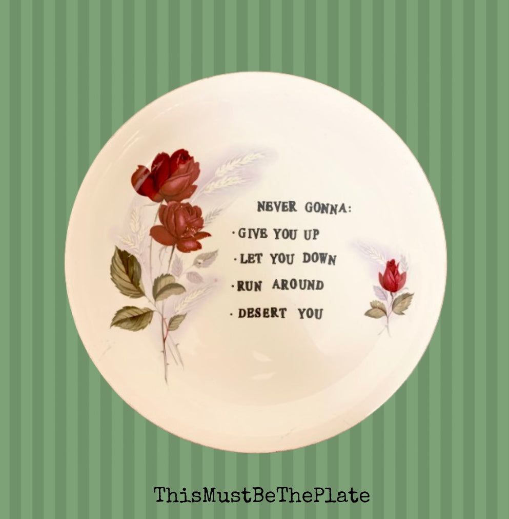 Upcycled vintage decorative plate - some faint surface markings side & bottom of the plate (close up pics on listing) They aren’t really noticeable but price is reduced to reflect the markings.