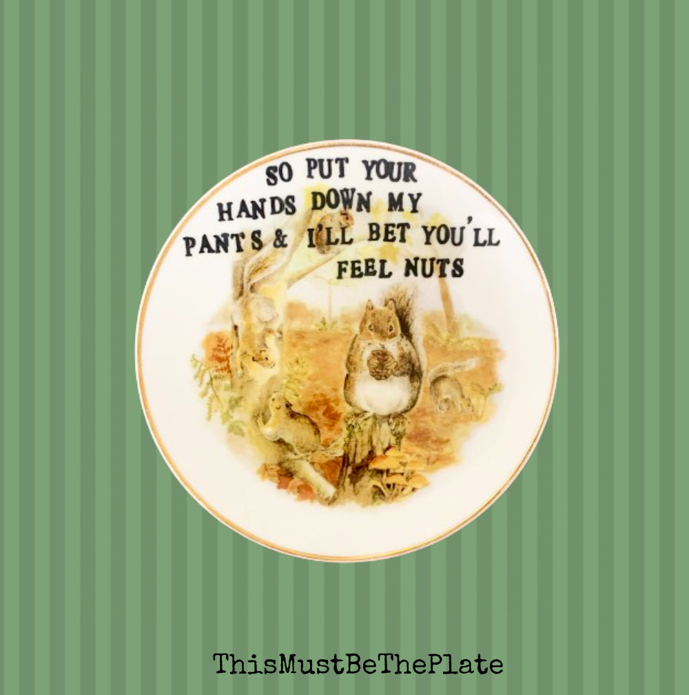 Plate measures 6” and all lettering is graffiti style, hand stamped, so plate is for decorative use only & should not be washed or used for food.